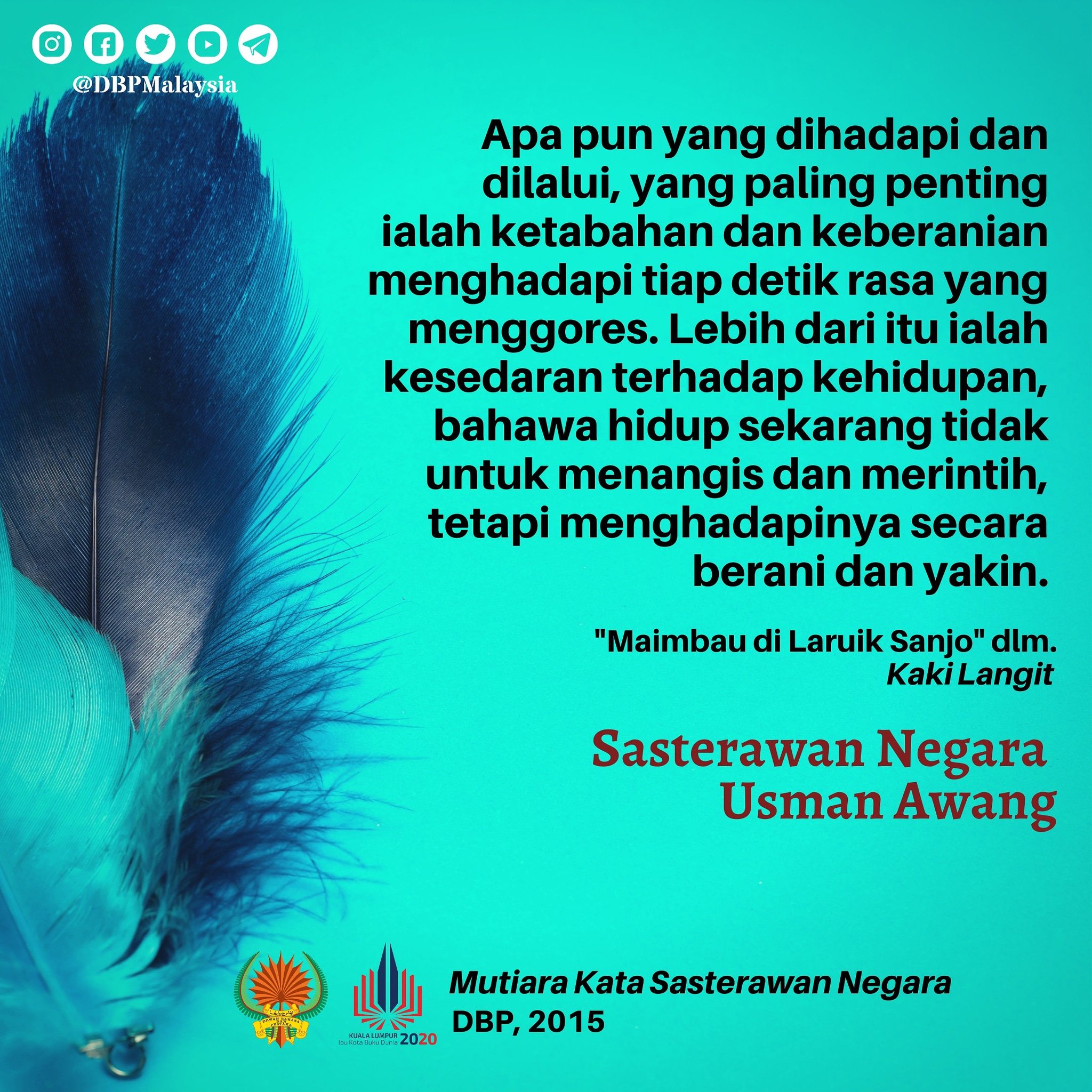 Beberapa dari mereka yang biasa tidur lelap mengeluh bahwa malam terlalu singkat. Menurut za'ba , peribahasa ialah susunan kata yang pendek dengan makna yang luas. Kata mutiara dalam bahasa inggris mengungkap kekuatan rasa syukur kata kata mutiara bahasa inggris sebagai inspirasi hidup terbaik hidupmu jadi lebih maknyus dengan memahami kata mutiara bahasa inggris. Maka untuk itu pada kesempatan kali ini saya akan menulis kembali rangkaian kata kata mutiara bijak dalam bahasa melayu. Adapun artikel kata kata motivasi berikut ini yang dibuat untuk membangkitkan semangat agar bisa kembali menata kehidupan. Beda orang pesimistis dan optimistis. Lombong emas dalam diri kita ialah fikiran anda boleh menggalinya sepuas yang anda inginkan. Atau kata kata romantis ini juga dapat kalian jadikan untuk refrensi saat menulis puisi, entah puisi cinta, persahabatan dan yang lainnya deh. Ini juga akan memberikan sebuah semangat baru, motivasi, nasehat, atau ajakan tertentu. Adalah sebuah ungkapan yang bisa ditujukan untuk siapapun dan bernada positif. Meskipun kita terpisah saat ini, kita berdua bisa menatap ke bulan. Perumpamaan bahwa kasur bisa memanggil seseorang untuk segera tidur ini sangatlah menarik. Peribahasa melayu dan inggeris juga turut dimuatkan dalam kompilasi ini.